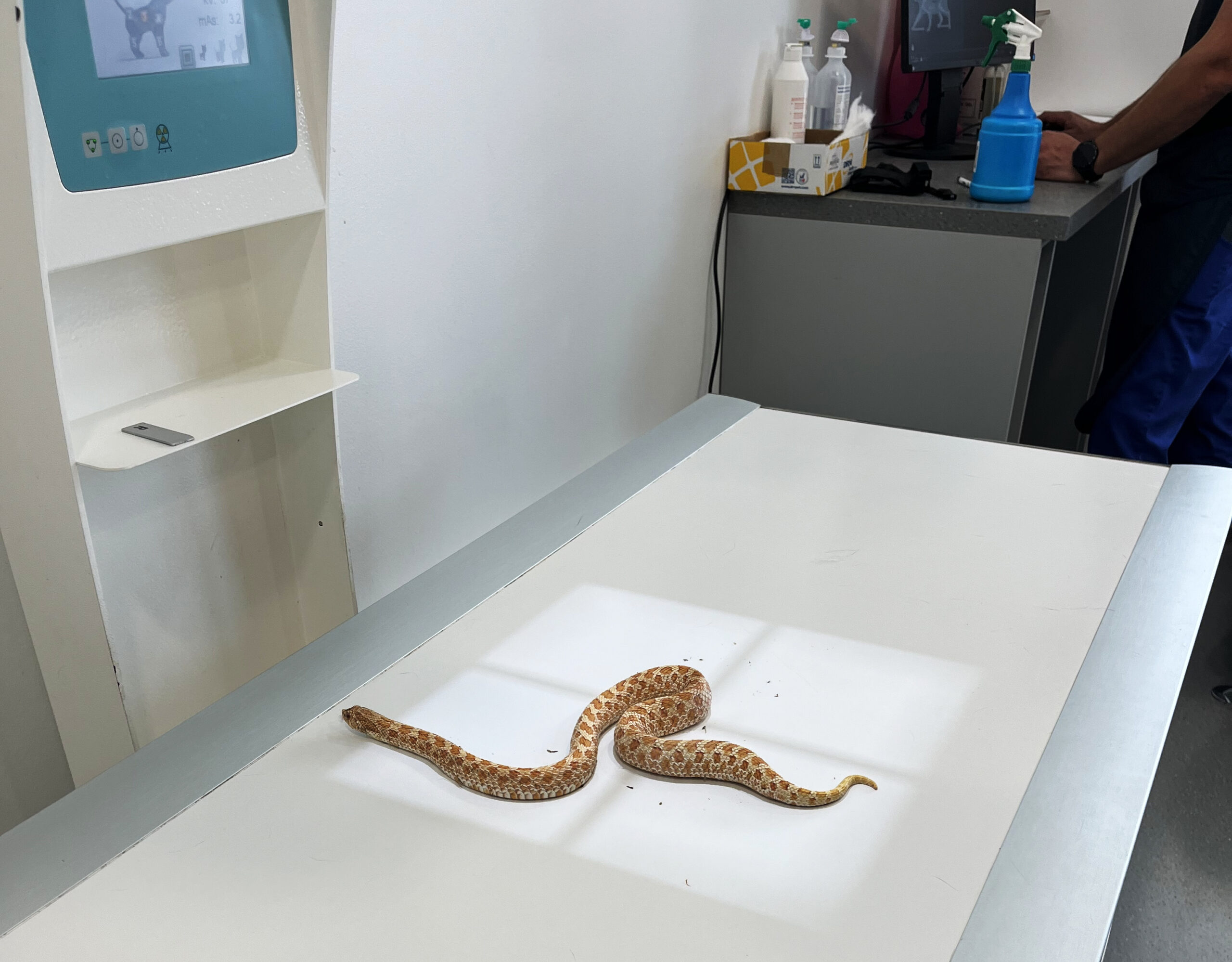 Bajsa at the vet, getting an x-ray to help solve the mystery of her unexpected second clutch.